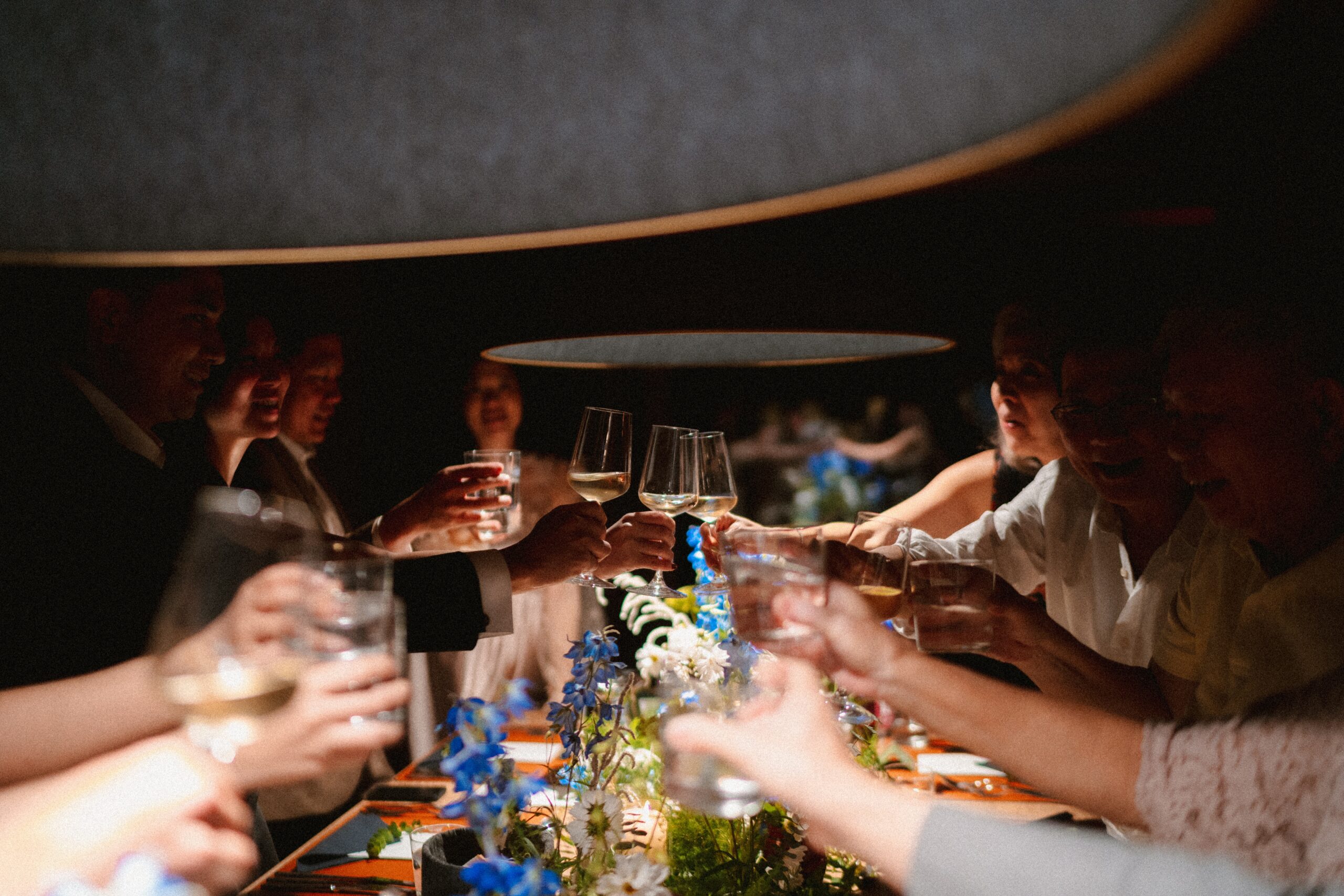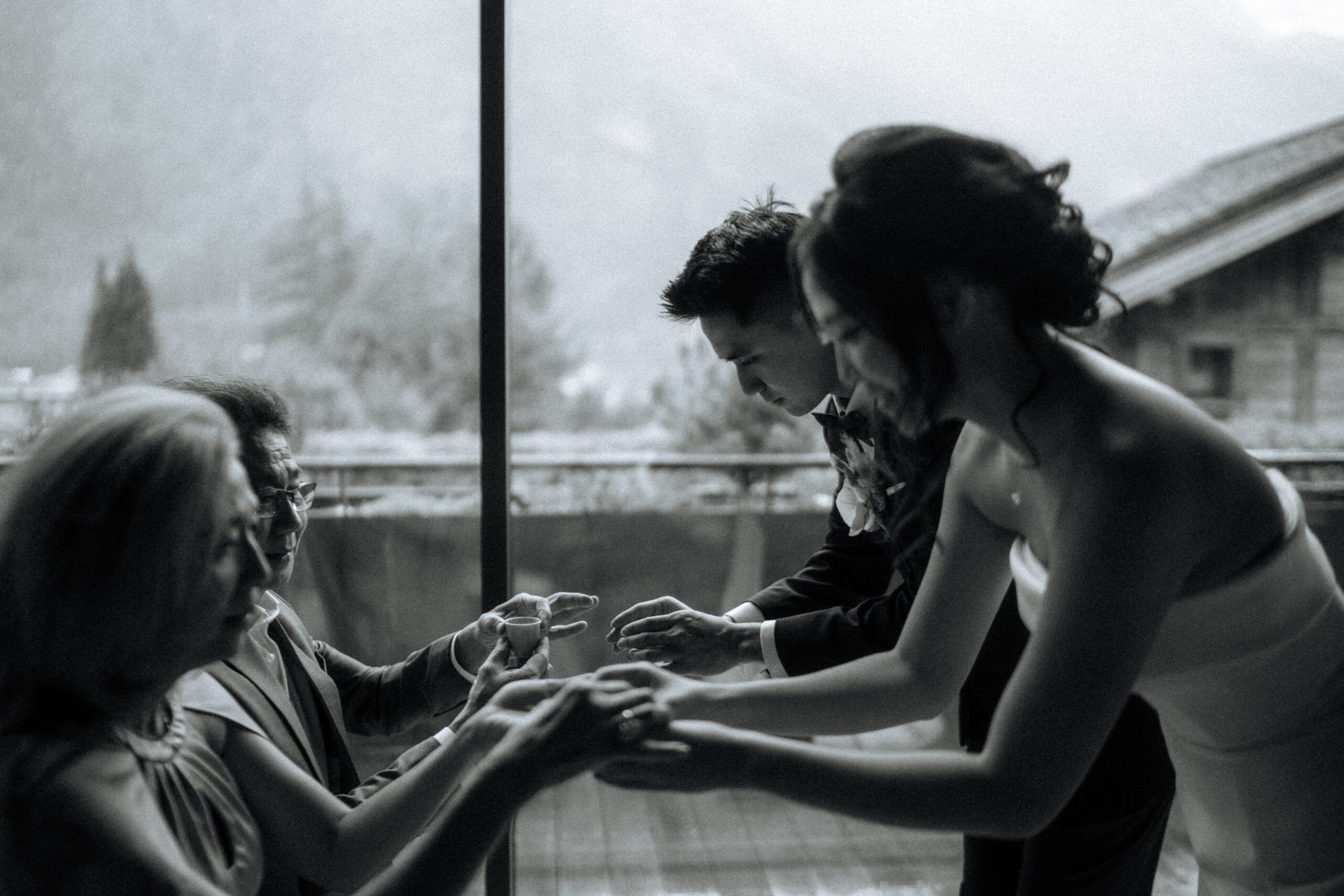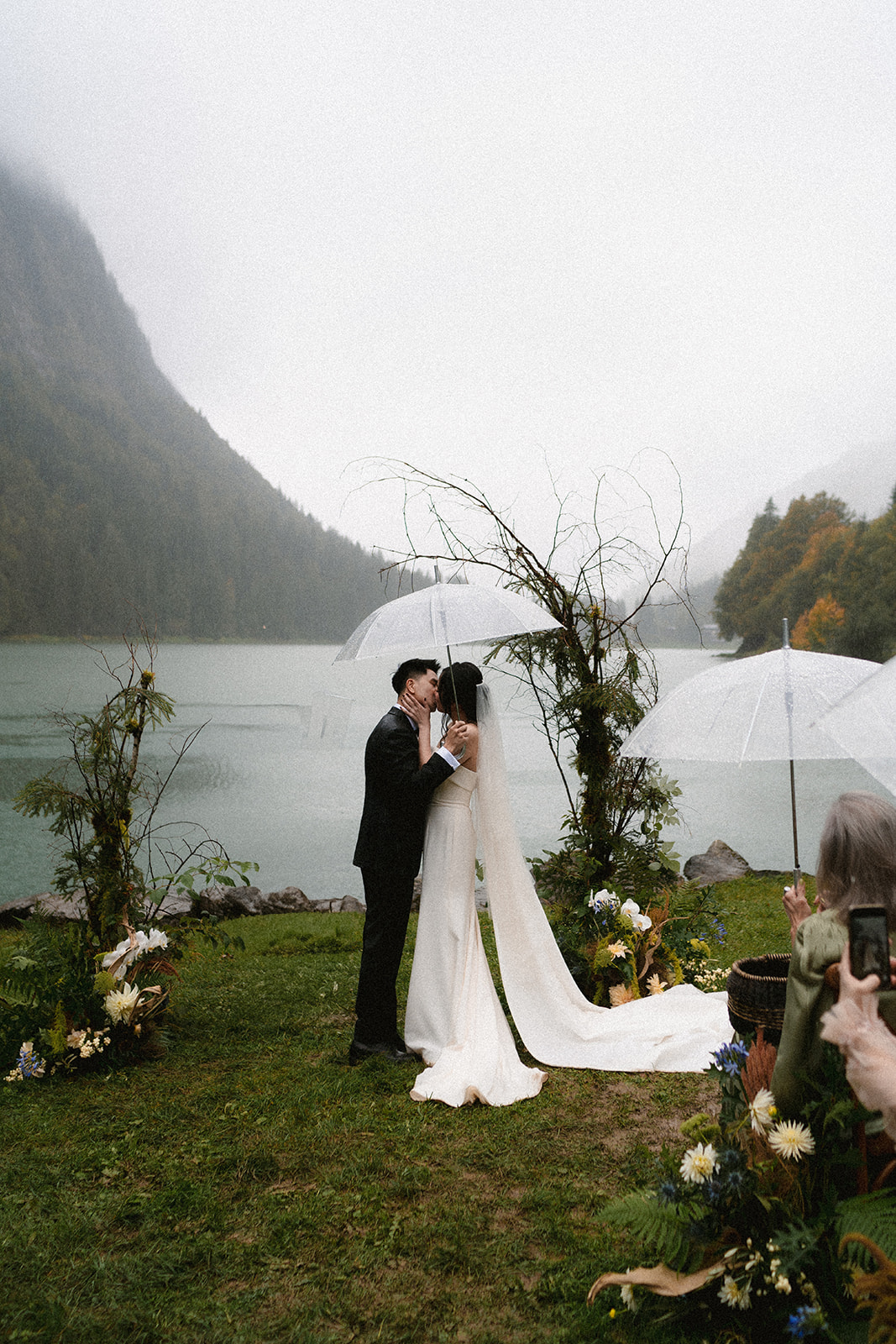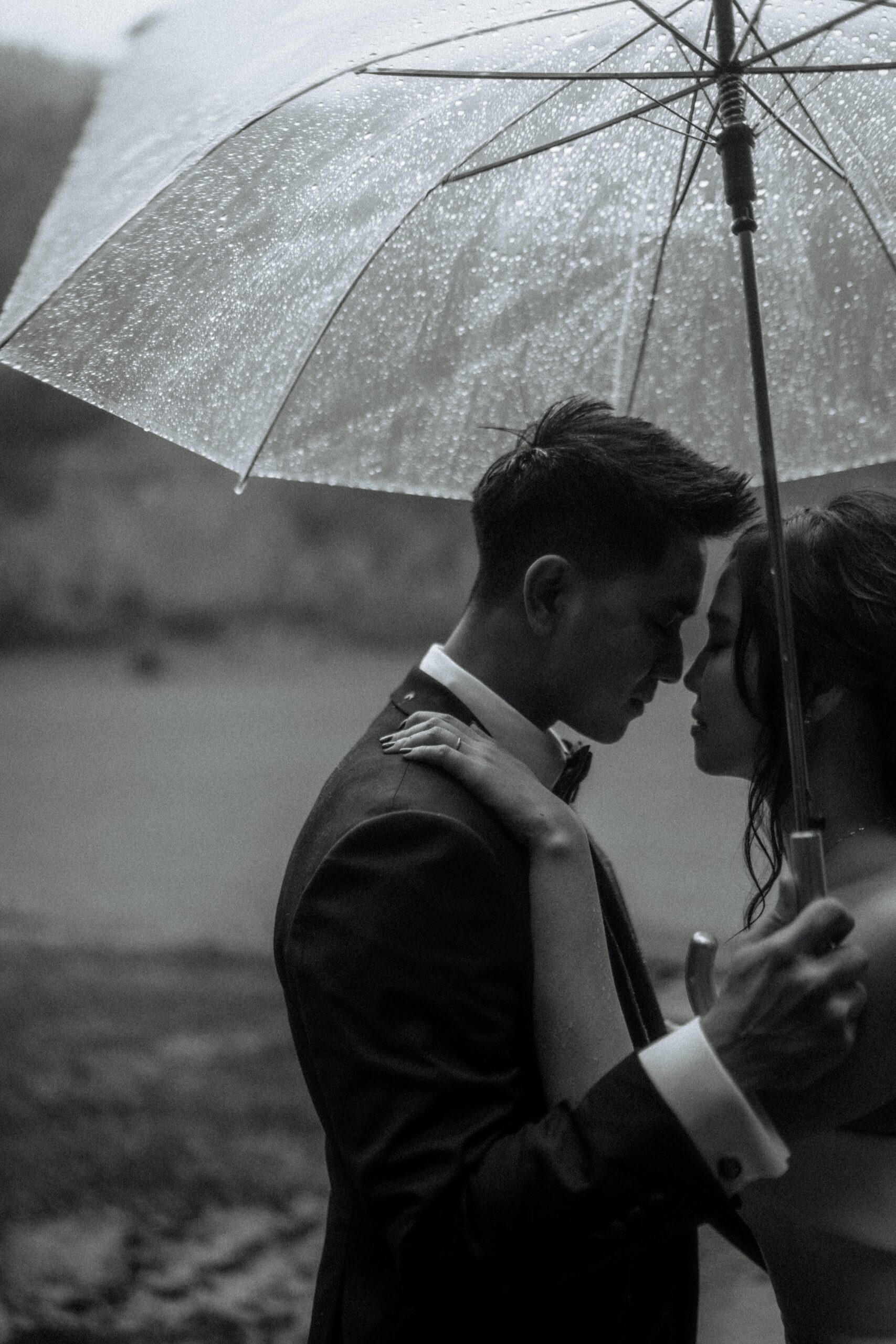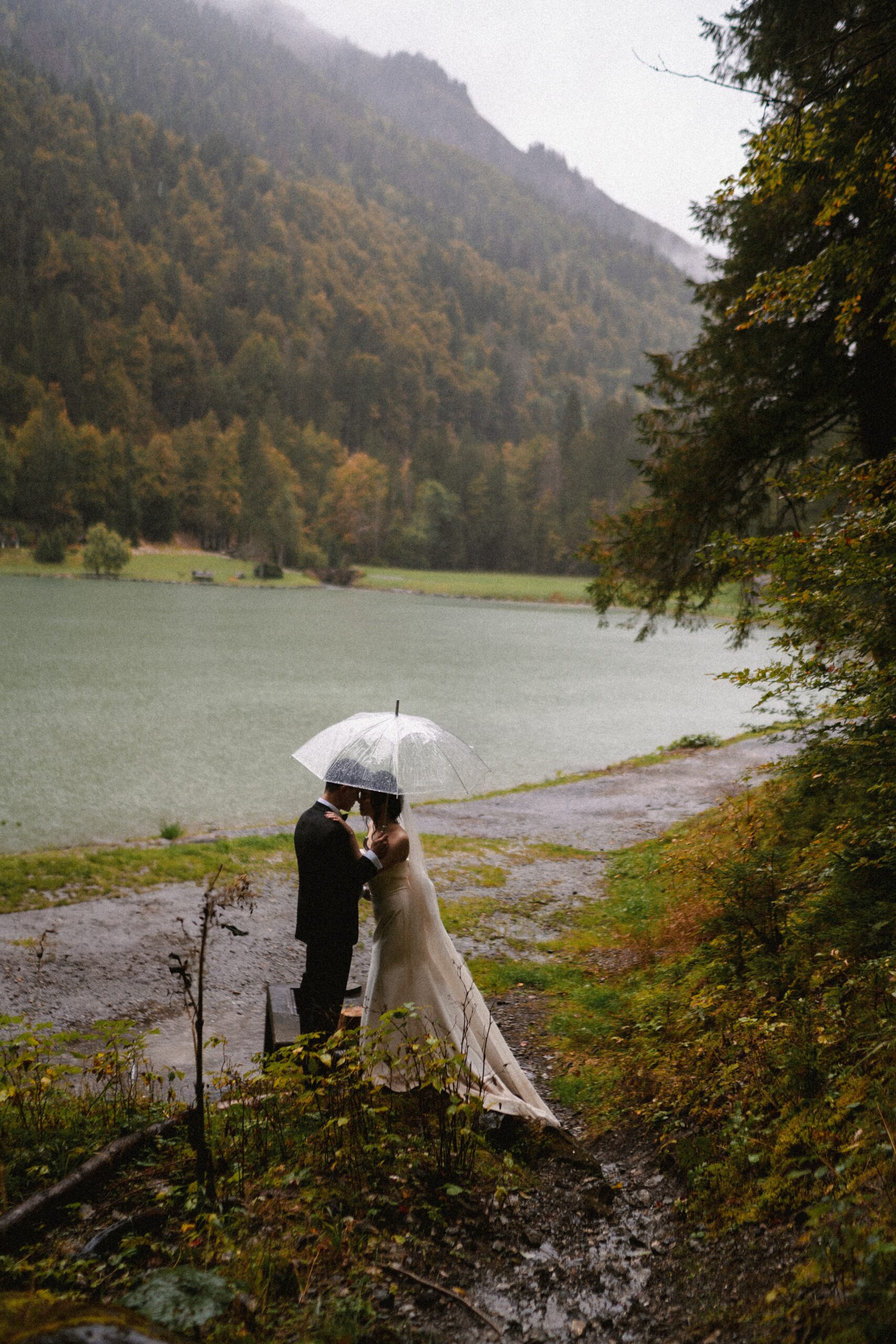 Mariage en extérieur sous parapluies, elopement romantique, couple heureux, photographie lifestyle, photographe créatif.