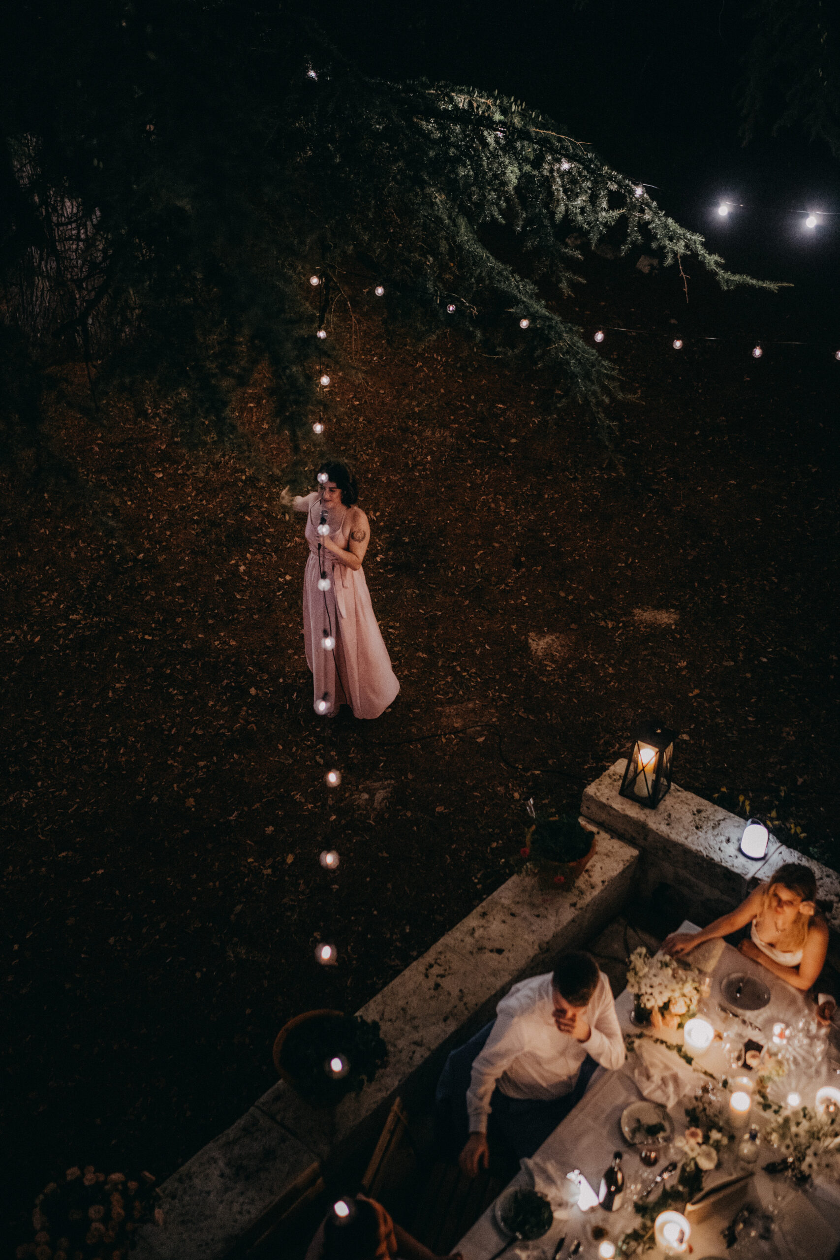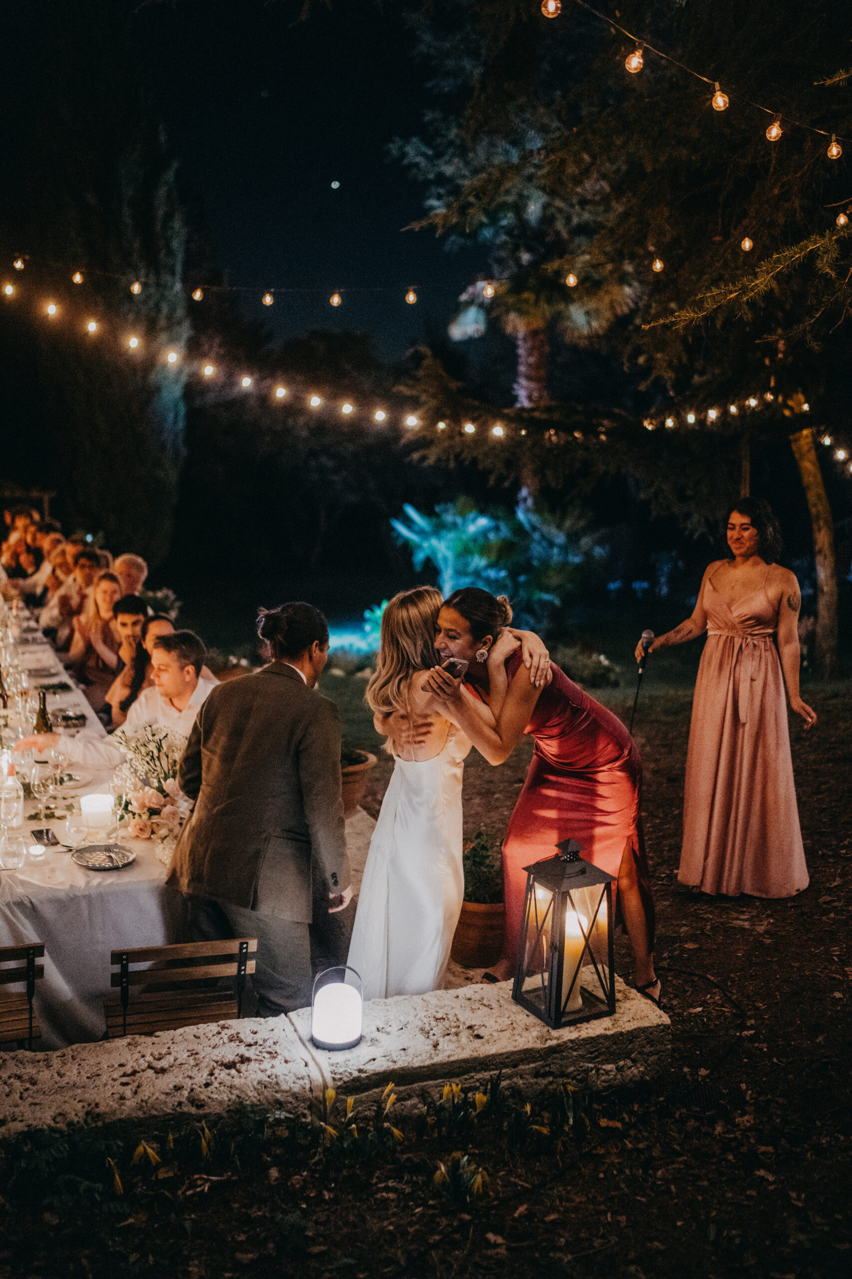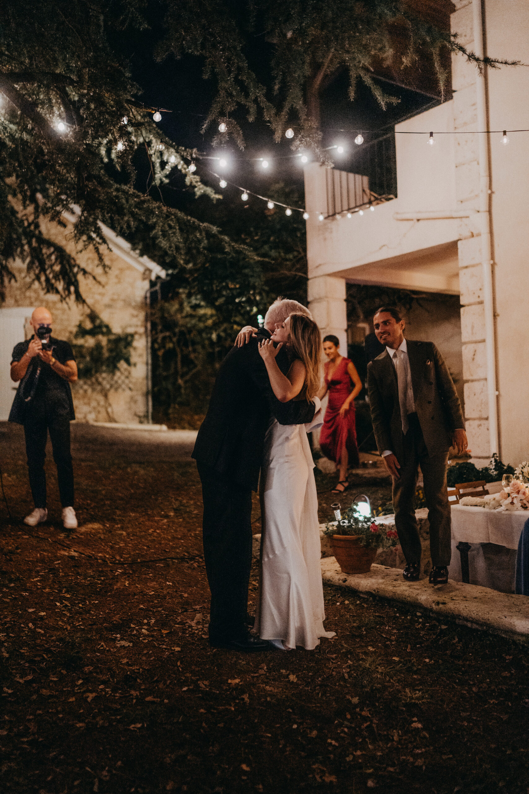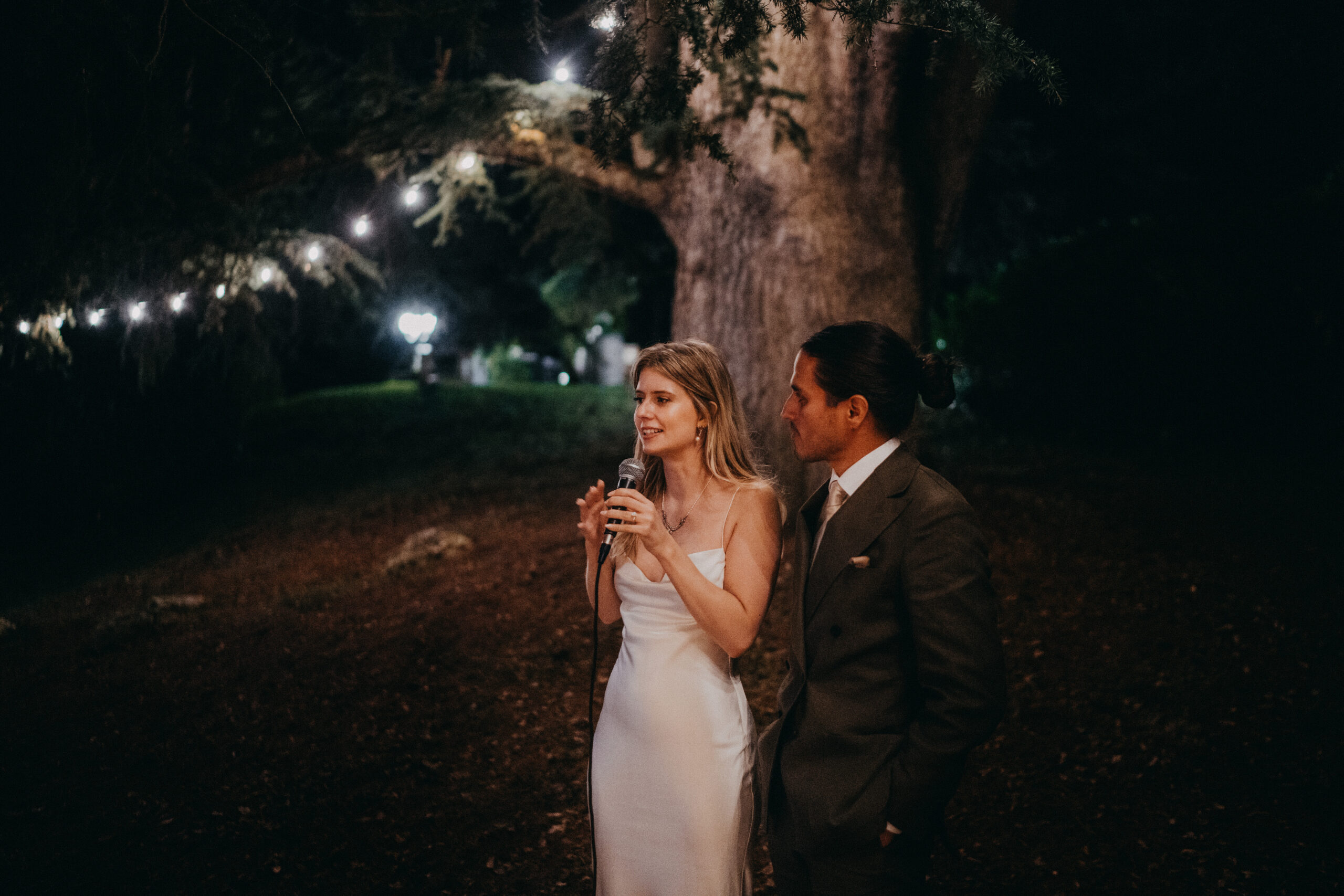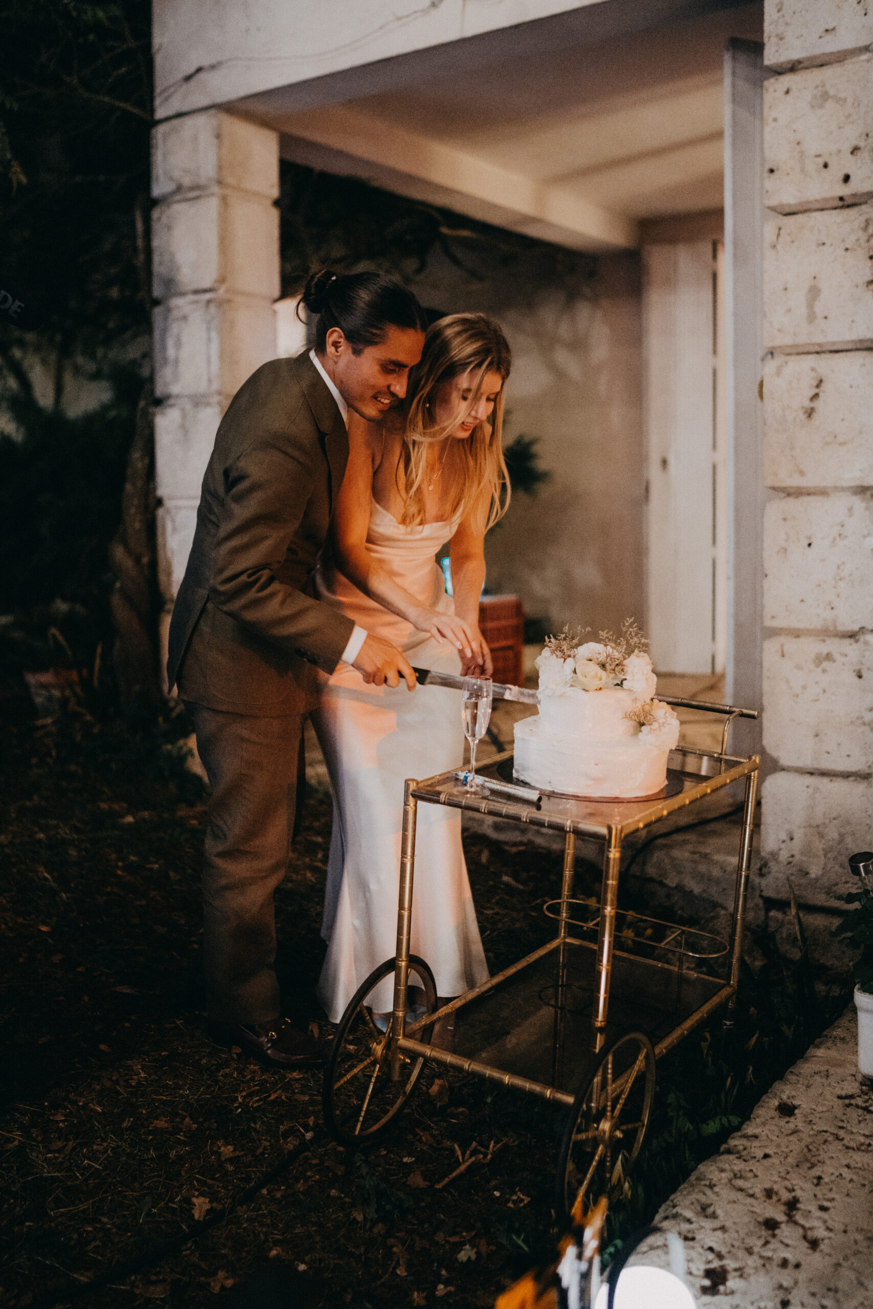 Mariage élégant sous les palmiers, couple célébrant l'amour avec leurs invités. Photographie lifestyle.